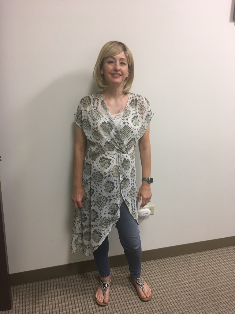 Oh well, I can just wear a wig. It saves so much time in morning and I never have to worry about a bad hair day! All you ladies out there should try a wig at least once. Our office has casual Fridays, so what a perfect time to shake up my look. I call it “Friday Funday”.