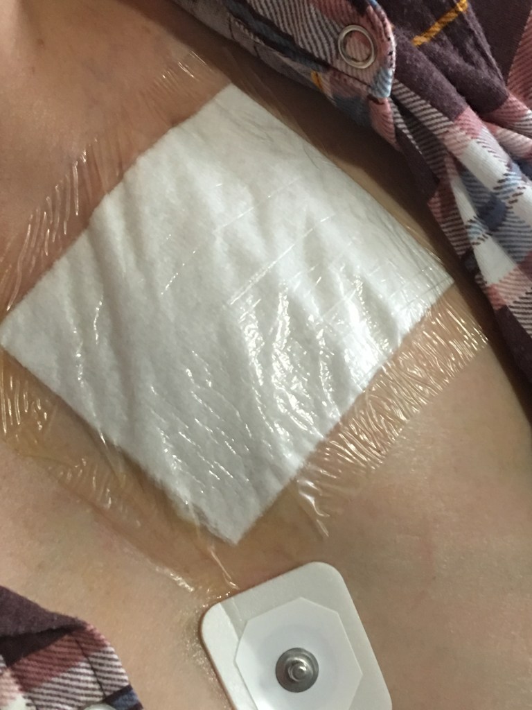 I was delighted because this surgery wasn’t as invasive and I would go home the same day. They gave us the same wound care instructions not to let a scab form because it is a sign of infection that could travel along the IPG wires into the brain. I was surprised how heavy the IPG was, making it rather hard to breathe. It sure seemed big but I chalked it up to swelling.